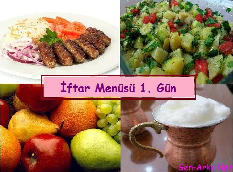 Ramazan 1. Gün İftar Menüsü Ramazanın ilk günü olan bu günde herkes iftar menüsünü planlar oldu. Ne pişirsem soruları ise kafanızı bir hayli meşgul ediyor olmalı. Sizi bu dertten kurtaracak ramazan 1. gün iftar menüsü yemek listesi ve tariflerini sizler için sunuyoruz. 1. Gün İftar Menüsü İnegöl Köfte+pilav, patates salatası, ayran, meyve İnegöl Köfte Tarifi Malzemeler: 1 kilo kadar dana kıyma, yarım su bardağı kadar...