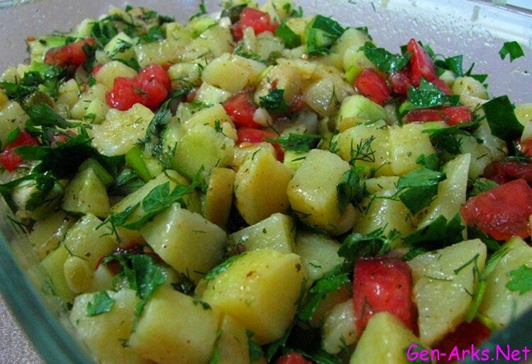 Malzemeler: 4 tane orta büyüklükte patates, 2-3 orta boy domates, birer tatlı kaşığı pul biber ve sumak, çay bardağının dörtte üçü kadar zeytinyağı, 3-4 adet taze yeşil soğan, 7-8 dal kadar maydanoz, yeteri kadar tuz.